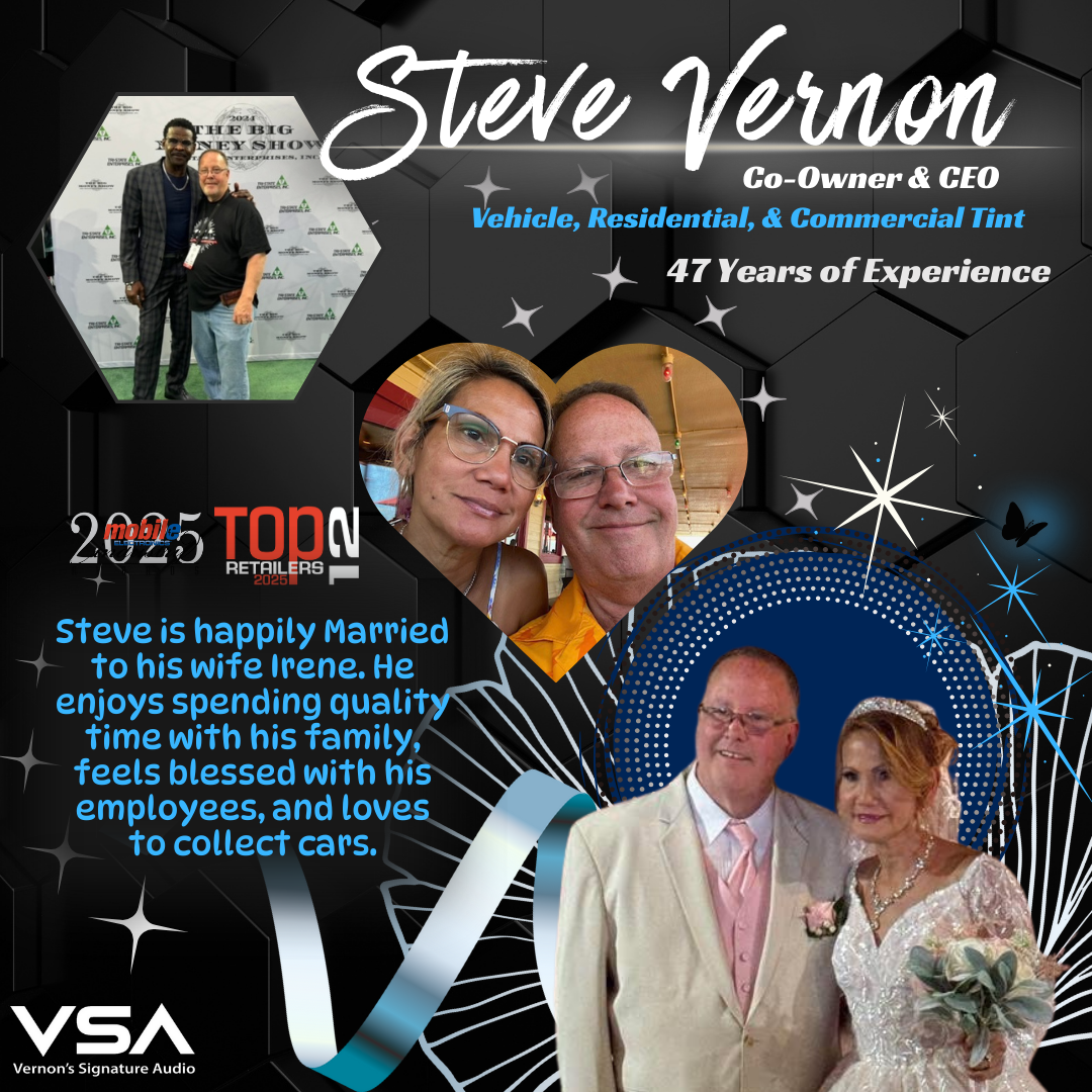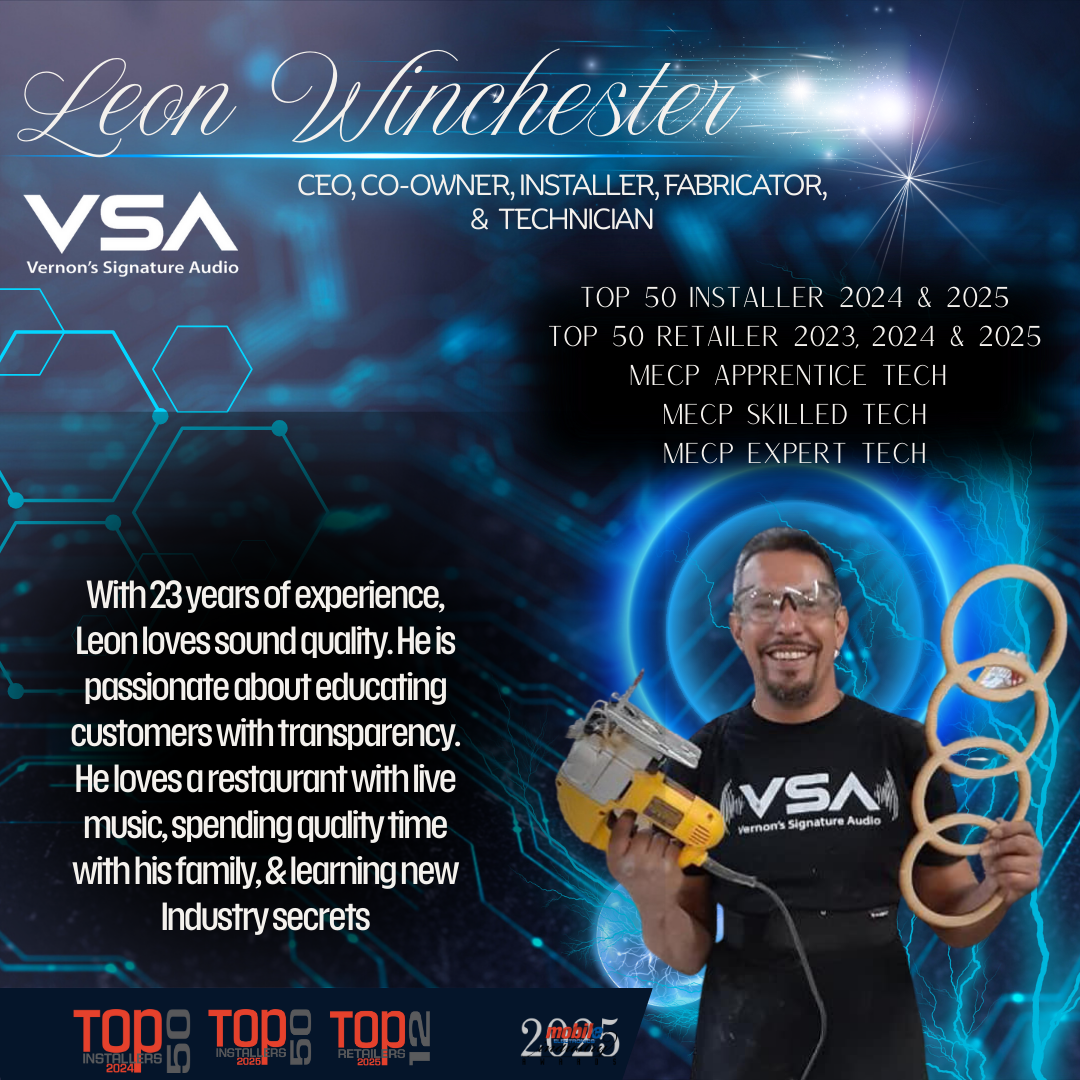 Leon Winchester and Steve Vernon have a combined 50 years’ experience in the car audio and tint industry. The partners joined together in 2019 to create a multifaceted business to serve guests with all their needs for car audio, tint, and more. VSA’s is a fast-paced environment and ever evolving business expanding at rapid rates. We strongly support advancement of career opportunities, providing training and development of team members through nationwide certification programs. We are excited to have you on this journey of growth and development with us.